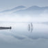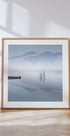 Silêncio azul de Jose Beut captura um momento de tranquilidade à beira de um lago enevoado na montanha. A silhueta de um pescador solitário ergue-se calmamente contra o brilho azul claro, enquanto o reflexo na água cristalina duplica o silêncio. Tons suaves e pastéis e linhas minimalistas criam uma atmosfera nórdica e meditativa e uma sensação de calma.