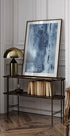 Um motivo calmo e abstrato em tons de azul profundo, onde linhas verticais e fluidas formam um fluxo gelado pela imagem. A paleta monocromática dá uma vibração moderna e descolada, enquanto os movimentos suaves criam equilíbrio e profundidade. Perfeito para quartos minimalistas que procuram uma calma elegante ou como contraste em interiores acolhedores.
