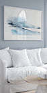 Uma paisagem calma de inverno em tons pastéis azuis suaves se espalha como uma respiração tranquila no horizonte. Finas pinceladas de aquarela sugerem neve, céu e árvores distantes em uma composição simples e equilibrada. O motivo irradia calma e consideração nórdica – uma estação tranquila para as paredes da casa. Por Treechild. Perfeito para sala, quarto ou escritório.