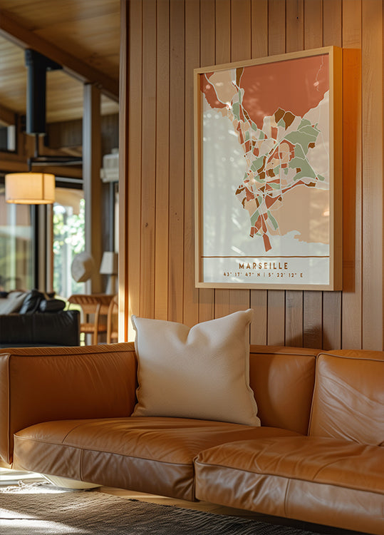 Black Maps Earth Tones 48 de Emiliano Deificus é um mapa estilizado da cidade de Marselha em tons quentes de terra em preto profundo. As linhas limpas e a calma gráfica capturam a pulsação da cidade e a geometria costeira sem ruído e proporcionam uma expressão sofisticada e atemporal que eleva tudo, desde a sala de estar até o escritório. Perfeito para o minimalismo nórdico.