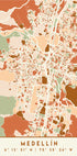Black Maps Earth Tones 49 de Emiliano Deificus combina um evocativo mapa da cidade de Medellín com tons de terra profundos e preto contrastante. Ruas, bairros e contornos finamente desenhados formam um padrão gráfico que equilibra calma e pulsação – perfeito para paredes modernas com um sentido de poesia urbana. Um ponto focal elegante.