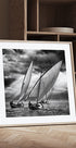 Uma cena de navegação dramática e monocromática: uma frota de veleiros elegantes corta o mar, enquanto raios de sol rompem nuvens pesadas, brilhando nas ondas. A força calma e o ritmo da regata captam a sensação de liberdade – criada pelo fotógrafo Angel Villalba. Um motivo intemporal para casas marítimas e paredes modernas.