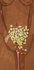 Daisy Bloom Nude Poster é uma ilustração ousada, porém poética, que celebra a feminilidade, o amor próprio e a beleza natural. Mostra uma mulher nua, de pele morena, segurando um delicado buquê de margaridas brancas. O trabalho combina tons quentes de terra com um fundo textural rosa vibrante, e as joias detalhadas e o bouquet floral fresco evocam temas de força, gentileza e sensualidade. Uma afirmação poderosa para interiores modernos, galerias de arte ou espaços íntimos.