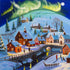 Uma aventura de inverno de Gordon Bruce: uma vila tranquila e nevada sob a dança da aurora boreal. A luz quente jorra das casas, uma ponte de pedra atravessa um riacho congelado e os abetos ficam pesados com a geada. Pinceladas pitorescas e céu noturno profundo criam calma, nostalgia e magia de inverno em casa. Perfeito para atmosfera de Natal e noites tranquilas de inverno.