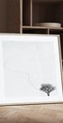 Pegada de MOSTAFA NODEH é um pôster evocativo e monocromático: rastros na neve recém-caída levam a uma árvore solitária em uma planície aberta e congelada. Os contrastes suaves e a vasta extensão do céu criam calma, melancolia e profundidade – um tema minimalista de inverno que convida à reflexão e ao drama tranquilo. O horizonte desaparece no branco e o tempo parece ter parado.