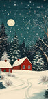 Et poetisk vintermotiv af Pictufy Studio: røde huse samler sig i sneen under en dybblå nattehimmel, hvor stjerner og måneskin kaster et stille skær over landskabet. Graner står frostklare, og varme vinduer antyder hygge indenfor—en rolig, nordisk julestemning til hjemmets vægge. Perfekt til stue, entré eller hytte.