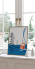 Uma noite tranquila de inverno à beira do lago: uma cabana de madeira vermelha com uma chaminé fumegante é emoldurada por pinheiros escuros, perfeitamente refletidos na água gelada. As formas simples e geométricas e os tons frios de azul criam uma atmosfera moderna e minimalista que exala calma, calor e aconchego isolado. Um calmante atraente.