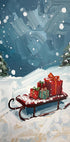 Um pôster atmosférico de inverno com um trenó de madeira carregado com presentes lindamente embrulhados, flocos de neve caindo silenciosamente e um abeto desaparecendo no fundo. A paleta é suave e quente, e o motivo evoca a paz, a expectativa e o aconchego do Natal - perfeito para criar uma atmosfera de Advento na sala de estar, no quarto das crianças ou no hall de entrada.