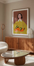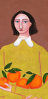 Lady with Oranges de Sharyn Bursic - Papel de qualidade premium com superfície lisa fosca e toque elegante. O acabamento fosco reduz o brilho e proporciona uma aparência refinada e atemporal. Forte e durável para uso duradouro, ideal tanto para ambientes profissionais quanto para displays decorativos.