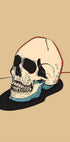 Ilustração de caveira em fundo bege por Nicholas - Papel premium com superfície fosca e aparência elegante. O acabamento fosco reduz o brilho e proporciona uma aparência refinada e atemporal. Forte e durável para uso a longo prazo, ideal para ambientes profissionais e displays decorativos.