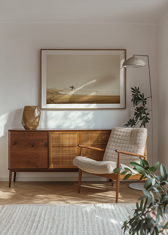 Surfista por Dieter Reichelt - Papel premium com superfície fosca e aparência elegante. O acabamento fosco reduz o brilho e proporciona uma aparência refinada e atemporal. Forte e durável para uso a longo prazo, ideal para ambientes profissionais e displays decorativos.