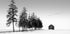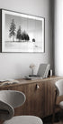 A Sunny Winter Day, de Steven Zhou, retrata uma paisagem de inverno brilhante em preto e branco. O sol brilha na neve e na geada enquanto os gansos passam por um celeiro e uma casa de fazenda solitários. As árvores nuas e o ar puro criam uma atmosfera calma e pastoral com elegância intemporal e frieza nórdica. Um visual de alto contraste confere ao motivo uma calma gráfica moderna.