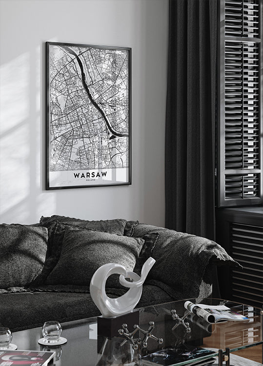 Warsaw comes to life in this minimalist city map print, tracing the Vistula’s sweeping curve and the fine web of streets from Śródmieście to Praga. Clean lines, balanced contrast, and crisp typography spotlight bridges, parks, and districts, creating a refined urban statement for modern interiors. Perfect for travellers and design lovers.