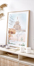 Et poetisk vinterblik over Paris, hvor Sacré-Cœur rejser sig over sneklædte tage i dæmpede, kølige toner. Fine grafiske linjer og blide kontraster fremkalder frostklar ro, mens lys og skygge leder blikket mod basilikaens silhuet. Skabt af Petra Lizde – en stilren hyldest til byens stille magi i vinterdis.