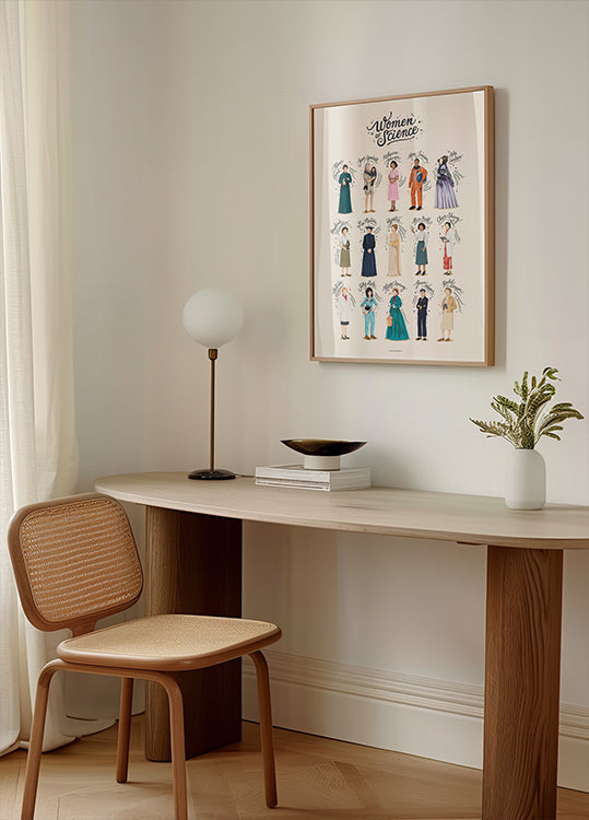 Mulheres da Ciência por Nour Tohme - Papel premium com superfície fosca e aparência elegante. O acabamento fosco reduz o brilho e proporciona uma aparência refinada e atemporal. Forte e durável para uso a longo prazo, ideal para ambientes profissionais e displays decorativos.