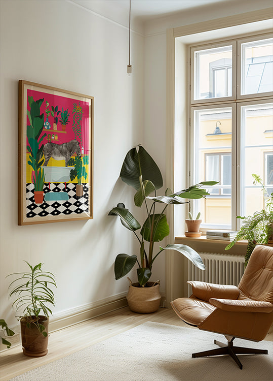 Zebra Bathtime da WallChart Art Studio - Papel de qualidade premium com superfície lisa fosca e toque elegante. O acabamento fosco reduz o brilho e proporciona uma aparência refinada e atemporal. Forte e durável para uso duradouro, ideal tanto para ambientes profissionais quanto para displays decorativos.